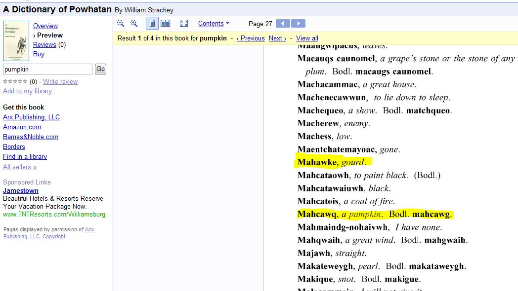 From the 1612 “Strachey’s Dictionary of Powhatan,” the predominant language of the tribes of the Powhatan Nation, including the Rappahannock Indian Tribe: